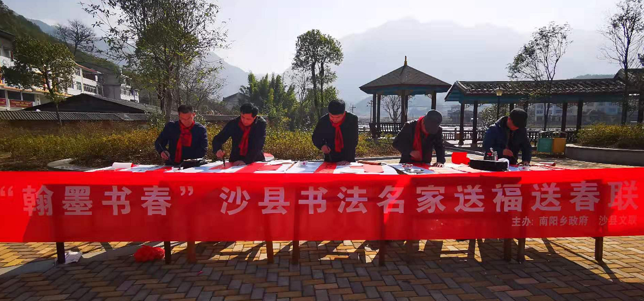 1月14日上午,南阳乡人民政府、南阳乡新时代文明实践所携手沙县文联举办“翰墨书春”书法家下乡送春联活动,本次活动有县文联主席罗辉等五名书法家参加,送出200余副春联。