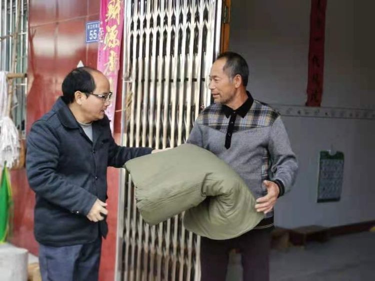 三是关心群众,强化物资保障。调拨应急物资,对各村上报的孤寡老人、贫困户等需求物资数量进行记录,由挂包村干部送上军用棉被、衣物等物资共计50余件。