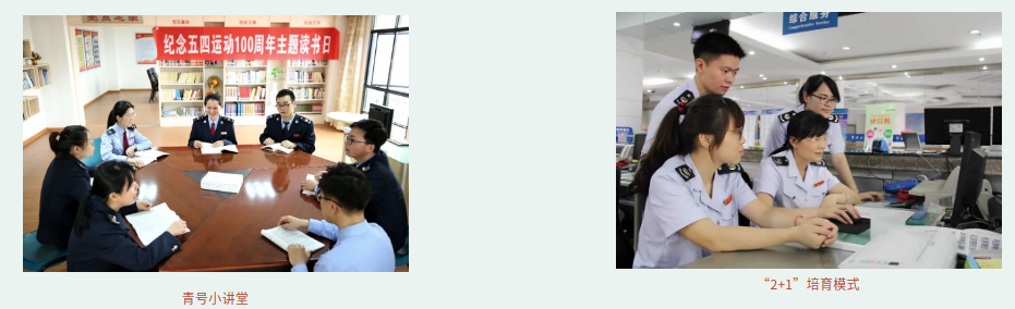 依托“青号小讲堂”,建立“每周一学、每月一测、每季一考”学习制度,围绕政治学习和业务培训两个抓手,营造比学赶超的良好氛围。同时,针对办税厅近两年新招录人员较多的现状,对“老带新”机制进行创新升级,实行“2+1”培育模式,即由一名办税厅工作人员和业务股室骨干联合开展教学,助力新晋青年快速成长。