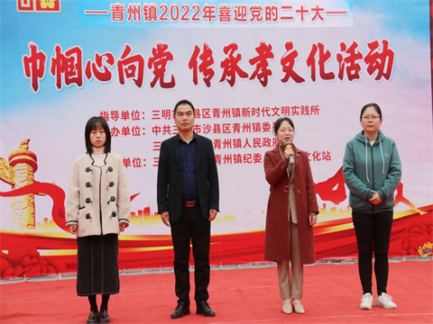 3月8日上午,青州镇开展喜迎党的二十大“巾帼心向党、传承孝文化”活动,此次活动由青州镇新时代文明实践所指导,青州镇党委、政府主办,镇纪委、妇联、文化站共同承办,区妇联、部分镇领导班子成员、全体干部职工、各村(社区)妇联主席、纪检委员等参加活动。