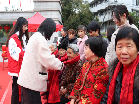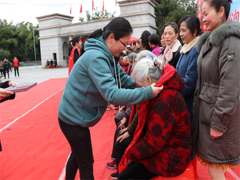 崇尚好家风、践行家庭美德。活动现场,特别邀请了20户孝老爱亲代表及他们的母亲一起共度佳节。区妇联、青州镇领导为老人们戴上围巾,送上节日的祝福。