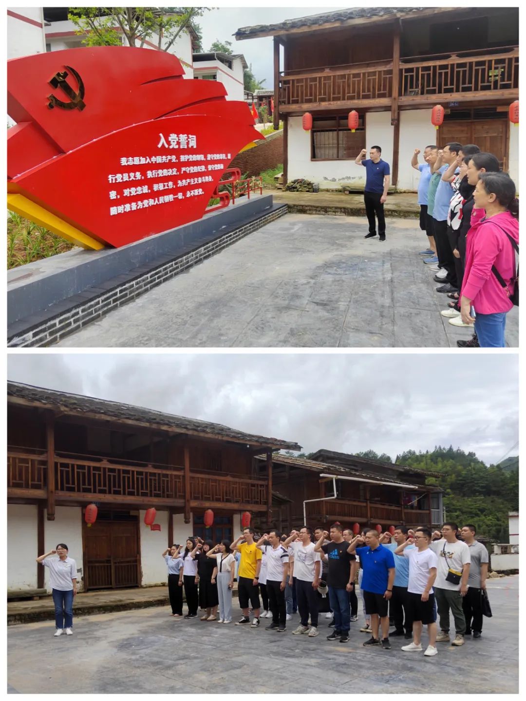 荷山村高山党校是富口镇与区委组织部、区委党校、区委党史和地方志研究室共同打造的全区第一个村级高山党校,占地800平方米,含党校主体和红色文化广场,主要是通过异地整栋搬迁方式,将购买的一栋老宅房修缮和改造而成,是一栋具有历史性的古建筑。课上,在古香古朴、别具特色的教室里汲取知识,与革命烈士感同身受;课间,站在平均海拔800多米的荷山村,蓝天白云,美景如画,呼吸着清新的空气,惬意舒适随之而来。