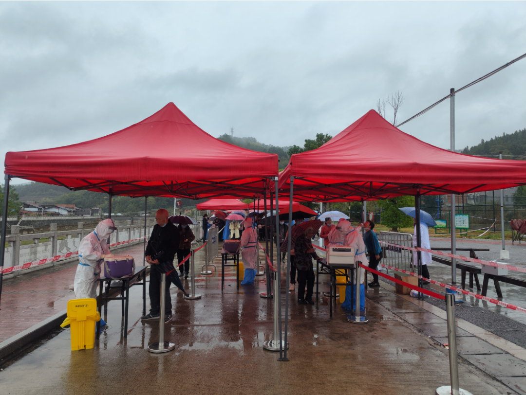 本次核酸检测实战演练主要面向集镇常住人口,共有夏茂镇老菜市场和溪南公园2个核酸采样点,现场设置了等候区、测温区、信息录入区、核酸采样区等区域。截至下午5点,共完成采样2132人次。