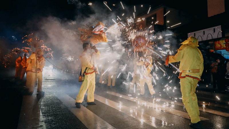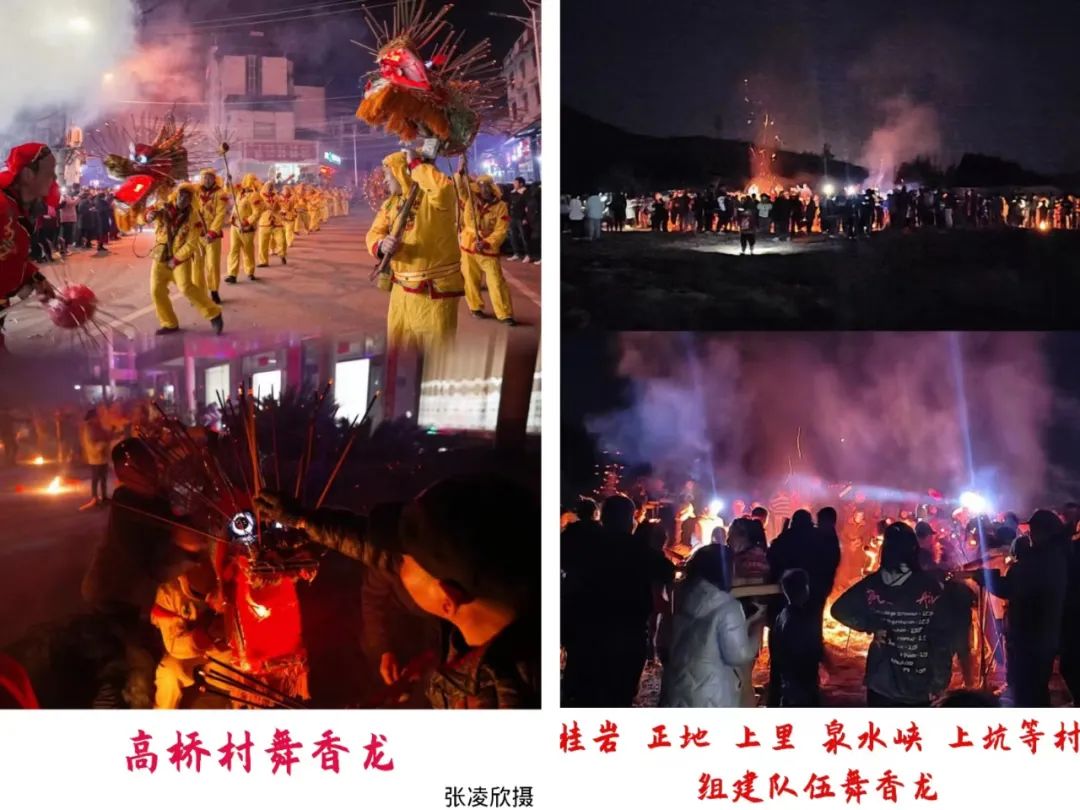 正月初九,声声爆竹,烟花朵朵,唤醒了集镇的夜晚。高桥各村的舞龙队伍整装待发,点线香、摆红烛、鸣喜乐,锣鼓先行,香龙起舞,烟火绽放,祈愿新年风调雨顺、国泰民安。