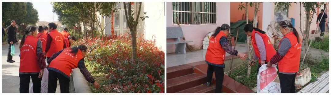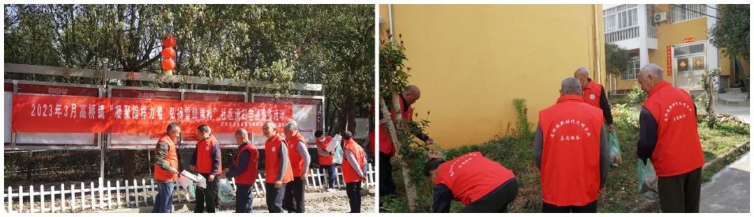 老有所为——清沟扫地共创文明,社区老人和学生组成3支志愿服务队,身穿红马甲,手拿扫帚、夹子,开展“清沟、扫地、摆整齐”活动,重点整治卫生死角、建筑垃圾和公共场所卫生,清除暴露垃圾,整治宅前屋后乱堆放问题。社区网格员、包村组员、高桥农商行等工作人员担任安全员,保障老人小孩活动安全。经过全体志愿者的共同努力,社区面貌焕然一新。