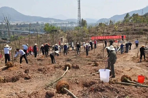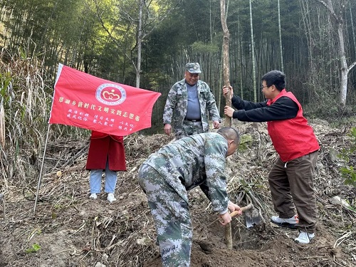 高砂镇乡村两级林长带领干部开展义务植树活动。