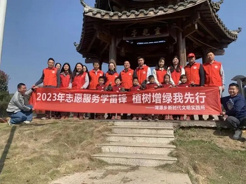 湖源乡乡村两级林长带领干部群众、师生代表参加2023年义务植树活动。