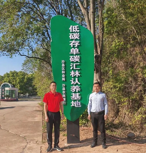 沙县区林业局联合沙县农商银行、“低碳存单”客户代表共建“低碳存单碳汇林认养基地”,并为首批132名“低碳存单”客户各自挂上“碳汇树认养牌”,让认养人成为爱绿护绿的代言人。