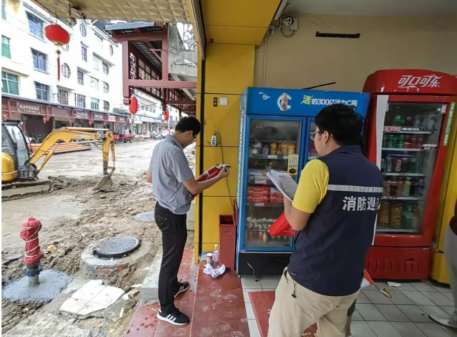 在超市、加油站、养老院等重点场所,检查组重点检查了场所的消防设施配备是否齐全有效;室内消火栓水枪和水带配备是否齐全;消防安全应急灯、疏散通道、疏散楼梯、安全出口等情况,对消防巡查记录、维保记录、值班情况进行了详细检查。