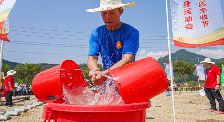 为庆祝第六届“中国农民丰收节”,紧扣农耕、农情、农趣,演绎民间体育,本次活动设有特产快收、稻谷收割、抗旱取水、徒手抓鸭、友谊拔河等五个比赛项目。