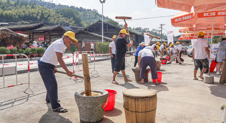 活动现场还设置了打糍粑环节,香喷喷的糯米饭在热火朝天的吆喝声中,被舂打成软糯粘稠的糍粑。大家相聚在一起,品尝这热乎乎的“五谷”,分享着丰收的喜悦。