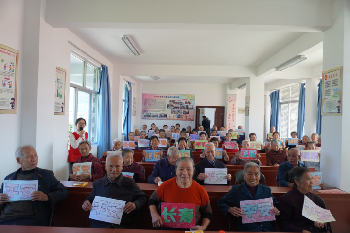 巧手暖心送祝福。活动中,老人们还拿着蜡笔,在写有“平安”“健康”“长寿”“快乐”的卡纸上填色,庆祝即将到来的重阳佳节。乐龄学堂还评选出了优秀学员,为他们颁发了奖品。