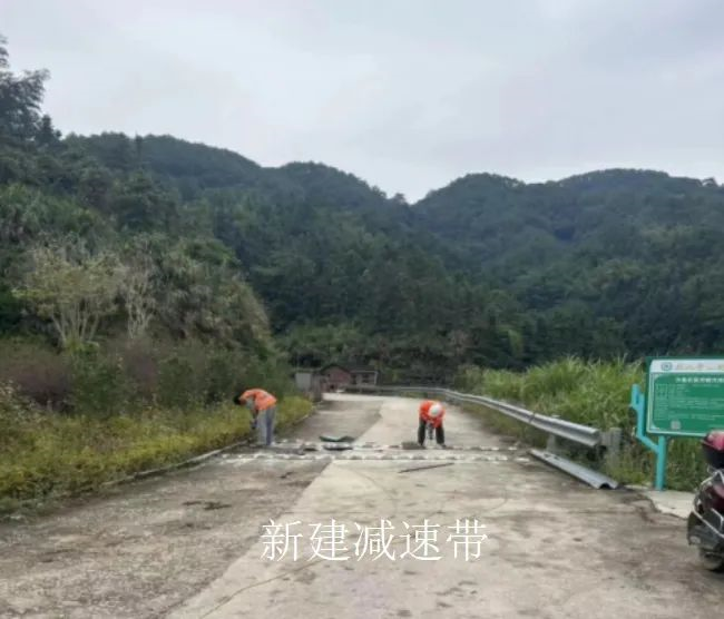 完成道路交通标识标线4处。一是新建洋邦水库减速带2条和急弯标志2面。