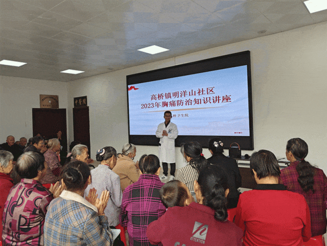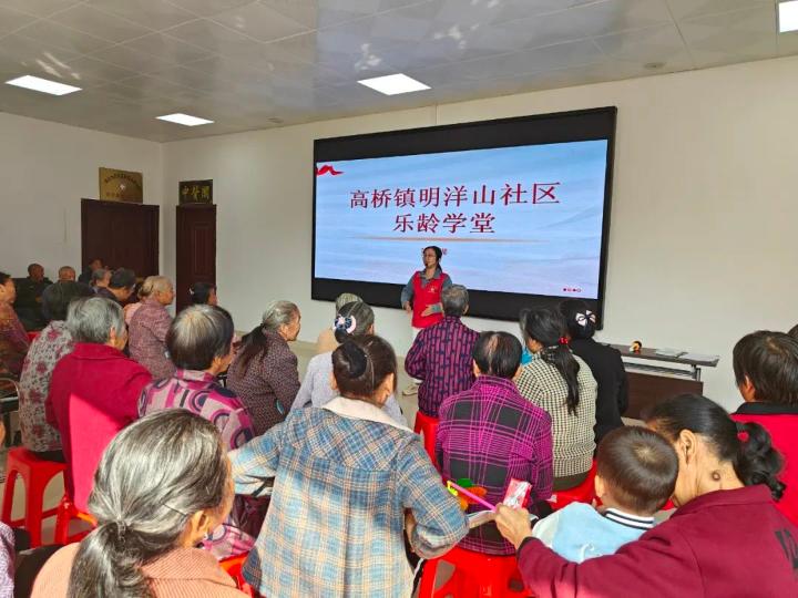 11月3日,高桥镇政府联合高桥卫生分院走进明洋山社区乐龄学堂开展胸痛防治、老年心理健康等知识讲座。课堂上,授课老师用生动的语言为老人们讲解了胸痛自我检测、突发疾病救治方法、老年人自我心理干预和预防性调节等有益身心健康的专业知识,现场解答老人们的健康疑问,和老人们一起分享保健心得,并为大家发放相关的宣传手册,引导老人们保持积极乐观心态。