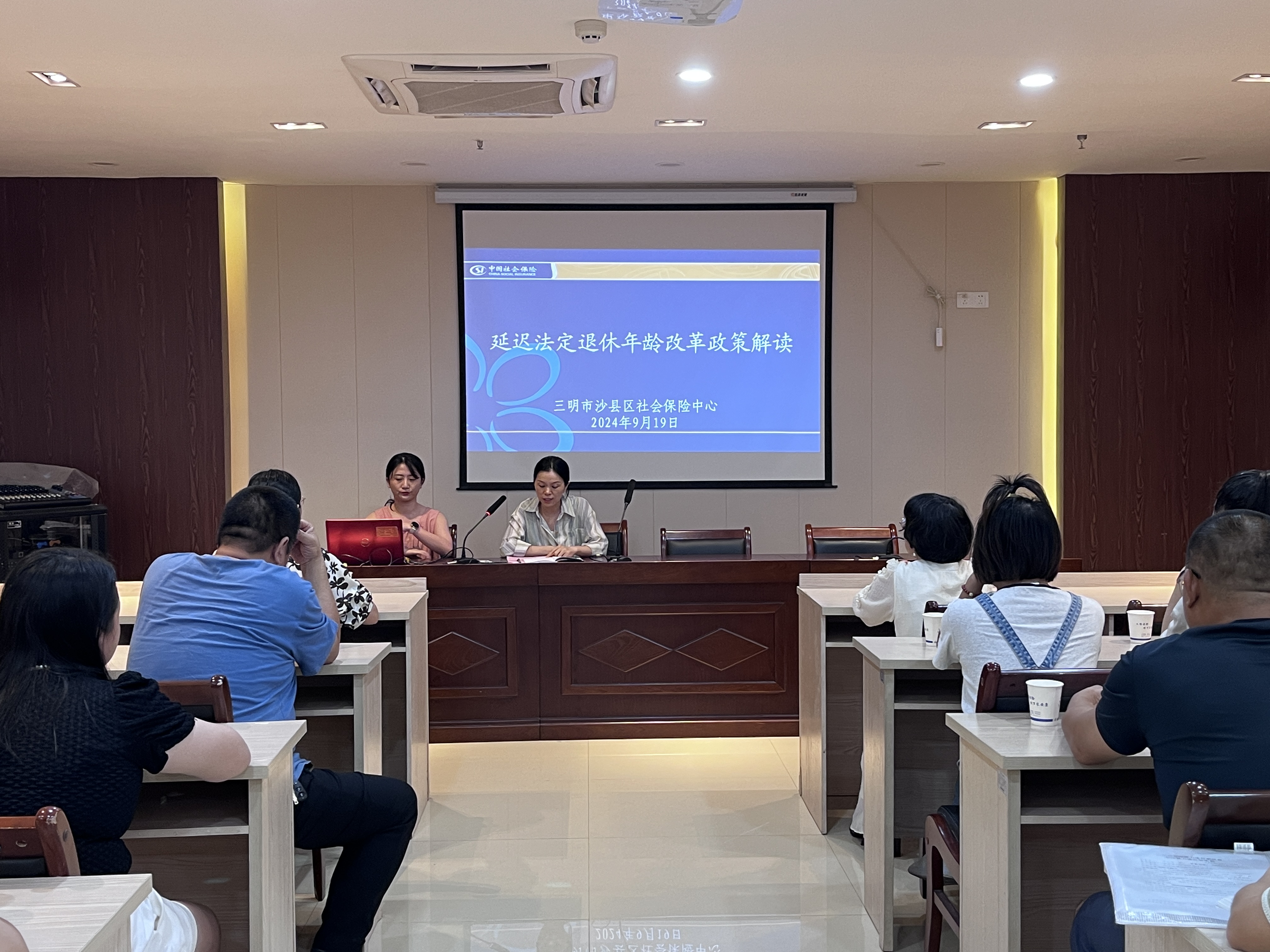 为深入学习宣传贯彻党中央关于实施渐进式延迟法定退休年龄的决策部署,近期,沙县区人社局分批次组织召开关于渐进式延迟法定退休年龄政策解读会议。沙县区各街道、乡镇分管领导、社区书记,国有企业、派遣公司等大型企业人事专管员参加会议。