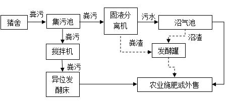 养殖场总投资6000万元,场区总占地60亩,总建筑面积3万多平方米,建有猪舍11栋,年出栏生猪1万头。养殖场养殖废水经收集池收集,其中70%的养殖废水通过异位发酵床处置,生产有机肥后外运;剩余30%养殖废水采用“固液分离机+黑膜沼气池”处理后排入储液罐(3000m³),用于果园、蔬菜和农田的施肥灌溉。