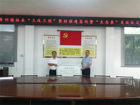 9月29日下午,青州镇举行林业“三改三创”整村推进签约暨“生态票”发放仪式。青州镇、区林业局、沙县农商银行、区森林资源收储管理有限公司有关负责同志,“三改三创”专班工作人员及相关村书记和林技员等20余人参加仪式。