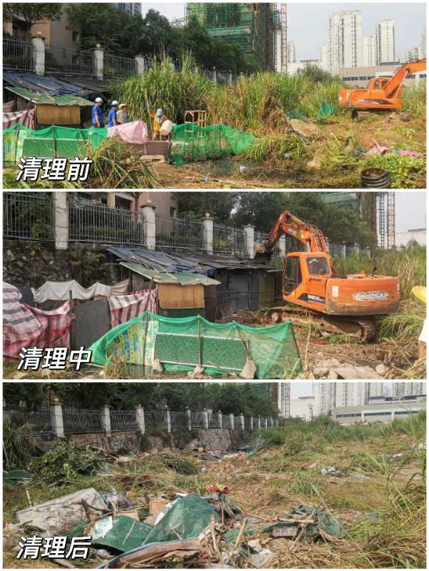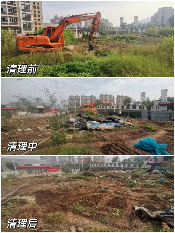 行动当日,城管队员对阻挠施工群众耐心解释相关政策取得群众的理解与配合;随后隔离施工现场,由大型机械进场实施清理拆除,共清理私垦菜地约12余亩,拆除违法搭建鸡舍及工具房约8处。
