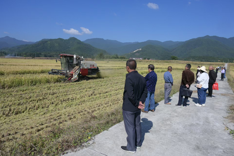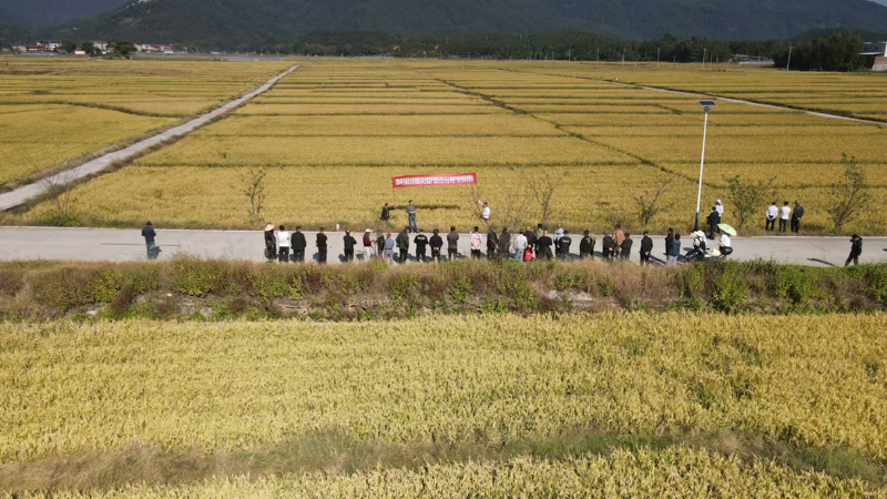 11月7日上午,在沙县区夏茂镇举办沙县区全程机械化再生稻高产高效示范片再生季测产验收现场观摩会,全区规模种粮新型经营主体部分业主代表、乡(镇、街道)粮食产能区项目负责人、区农业农村局相关办站负责人50余人,现场观摩了沙县慧农种植专业合作社在长阜村实施的全程机械化再生稻高产高效示范片再生季田间长势和产量实割情况,省粮油科林武科长亲临现场指导。