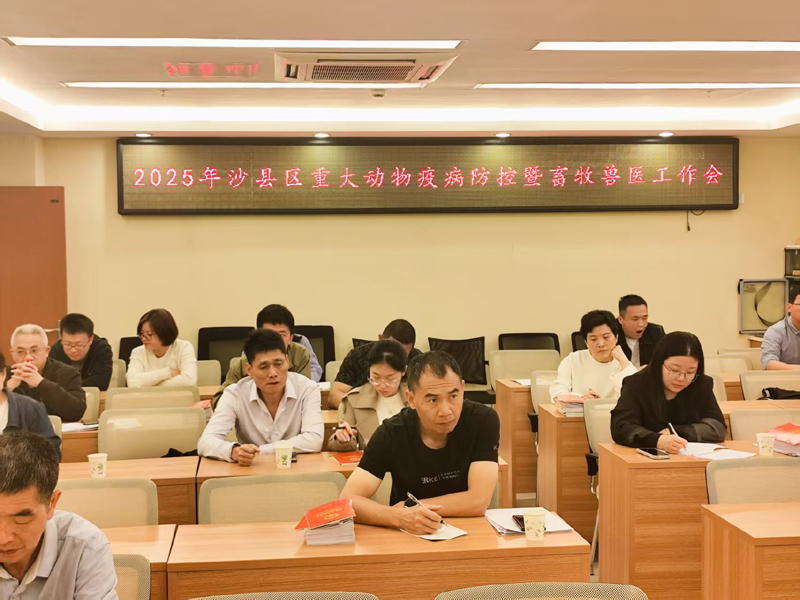 为认真贯彻落实省市畜牧兽医工作会议精神,3月28日,沙县区农业农村局召开2025年沙县区重大动物疫病防控暨畜牧兽医工作会议,各乡(镇、街道)畜牧兽医负责人及官方兽医,区农业农村局全体畜牧兽医人员参加会议。会议传达了省市畜牧兽医工作会议要求,对全区重大动物疫病防控工作做了全面部署。