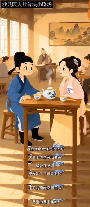 为深入开展骗取套取社保基金整治专项活动,沙县区人社局创新打造“线上沉浸式普法”新模式,以群众喜闻乐见的动漫形式推出“人社动漫普法小剧场”,让人社政策法规知识“润物细无声”地“飞入寻常百姓家”。本期小剧场主题为《警惕挂靠陷阱 守护自身权益》,以生动、形象、具体的视频场景开展警示教育,解说人社政策,一针见血揭露其违法本质与风险,将生硬政策条文转化为可视化的“民生锦囊”,有效引导群众依法参保、依规维权,筑牢社保基金安全防线,为增进民生福祉注入新动能。