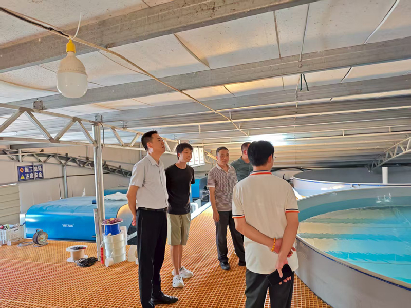 7月30日,三明市农业农村局副局长周斌带领渔业科、水技站等科室负责人,赴沙县区开展鳗鱼工厂化循环水养殖专题调研。调研组实地考察沙县现代渔业有限公司,重点观摩其创新建设的循环水养殖示范车间,系统了解养殖池、生化处理池、臭氧-紫外线双重消毒系统、供氧装置等核心工艺流程。