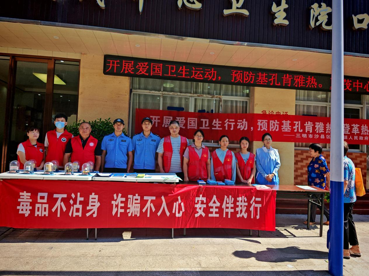 8月26日,夏茂镇组织镇卫计办、医保便民服务点,并联合区禁毒办、镇派出所、镇司法所在集镇中心开展爱国卫生、禁毒、反诈、普法、医保政策集中宣传,把“平安大礼包”送到群众手中。