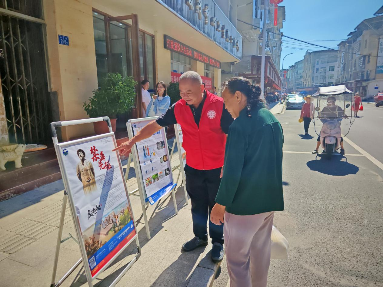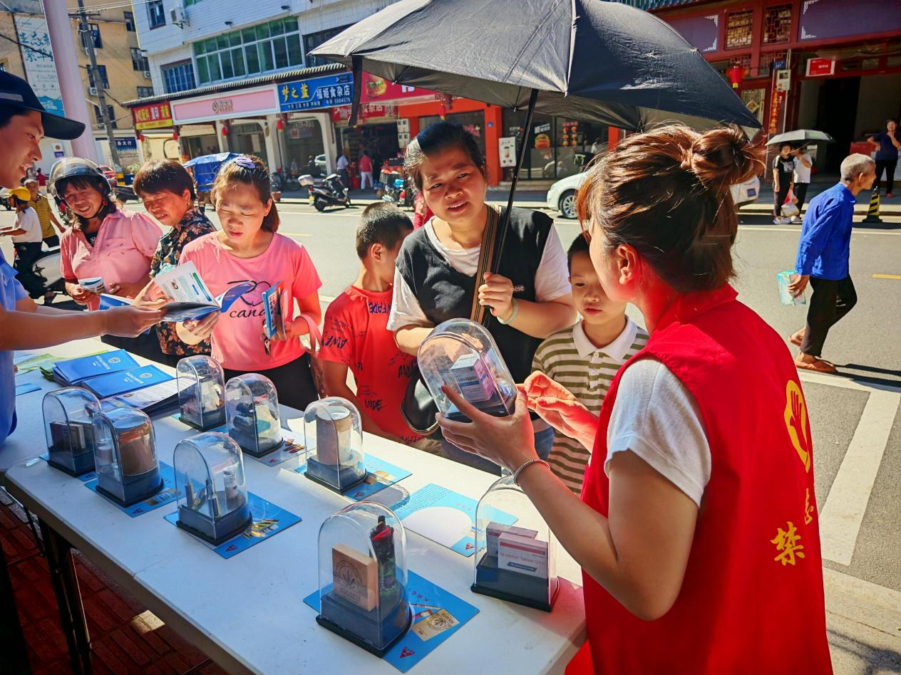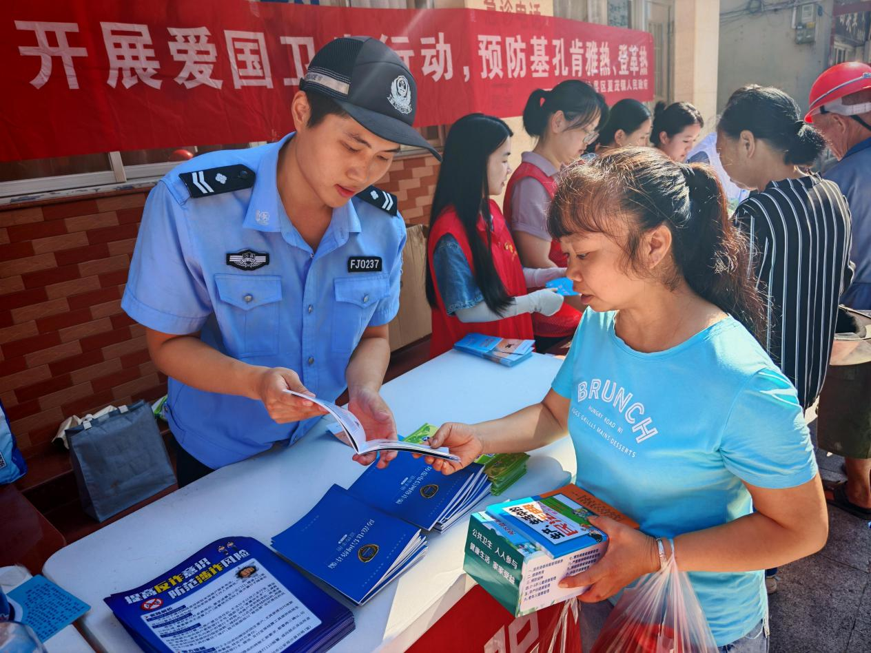 活动现场,各部门结合职能精准发力,让宣传既有“干货”又接地气。禁毒志愿者向群众展示了9余种仿真毒品模型,揭秘新型毒品伪装;派出所民警用身边案例拆解“冒充客服退款、刷单返利”套路,手把手指导群众安装“国家反诈中心”APP,让大家在互动中掌握防骗口诀;爱国卫生志愿者现场讲解预防基孔肯雅热、登革热相关知识,演示如何识别伊蚊孳生地,提醒群众“清积水、灭蚊虫、防叮咬”;医保工作人员一边发放医保宣传折页,一边为群众解答2026年度参保、异地就医、慢特病认定等内容;司法所工作人员向群众发放民法典及小吃业主普法等宣传册,提高群众安全防范意识。