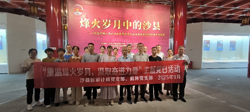 近日,沙县区审计局党支部联合退休党支部组织党员干部到沙县区博物馆三楼展厅开展主题党日活动,参观“烽火岁月中的沙县——中国人民抗日战争暨世界反法西斯战争胜利80周年专题展”,感受沙县儿女用热血书写的壮烈历史诗篇。