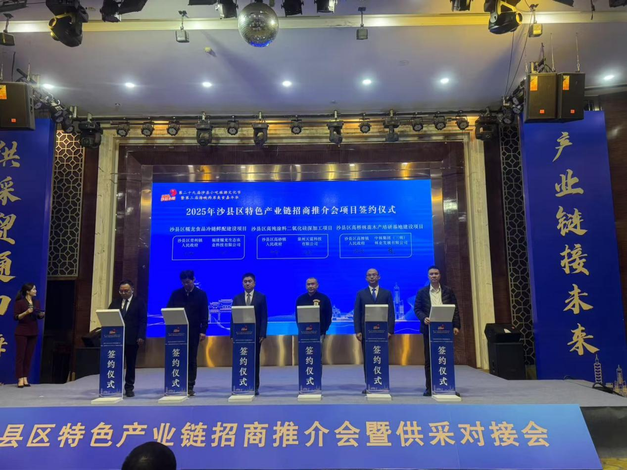 近日,沙县区举办特色产业链招商推介会。会上,高桥镇与中林集团(三明)林业发展有限公司就沙县高桥林苗木产培研基地建设项目签订投资协议。