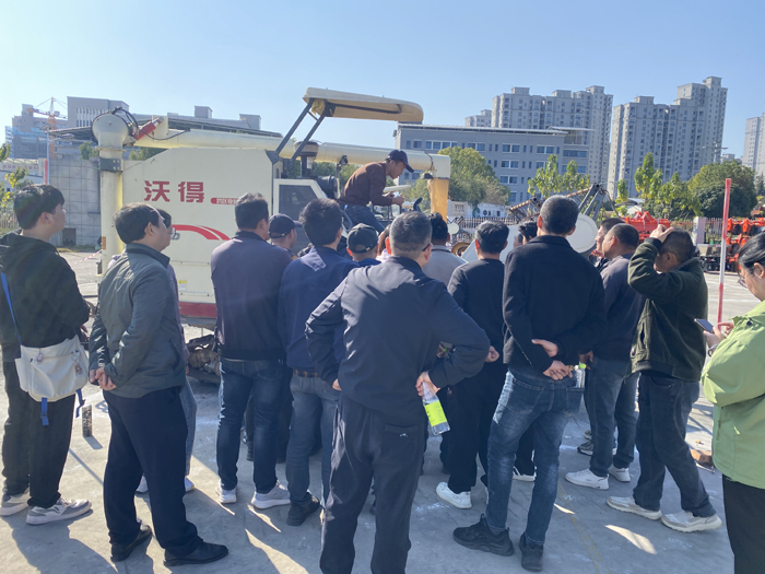 实训课堂:专家现场结合农机实物,讲解设备结构、工作原理与日常维护,开展故障排查、部件更换等实操教学;