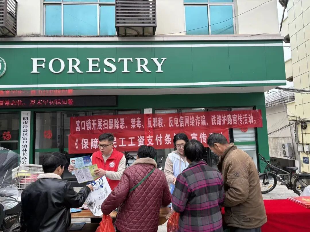 活动现场,志愿者们围绕扫黑除恶、禁毒、反邪教、反电信网络诈骗、铁路护路等重点内容展开宣传。他们一边发放图文并茂的宣传手册,一边用方言讲解典型案例,比如 “免费领鸡蛋”的诈骗套路、毒品伪装成零食的陷阱等,让老人们听得懂、能警惕。针对年末农民工讨薪高峰,工作人员还重点解读了《保障农民工工资支付条例》,手把手教大家用法律武器维护权益。