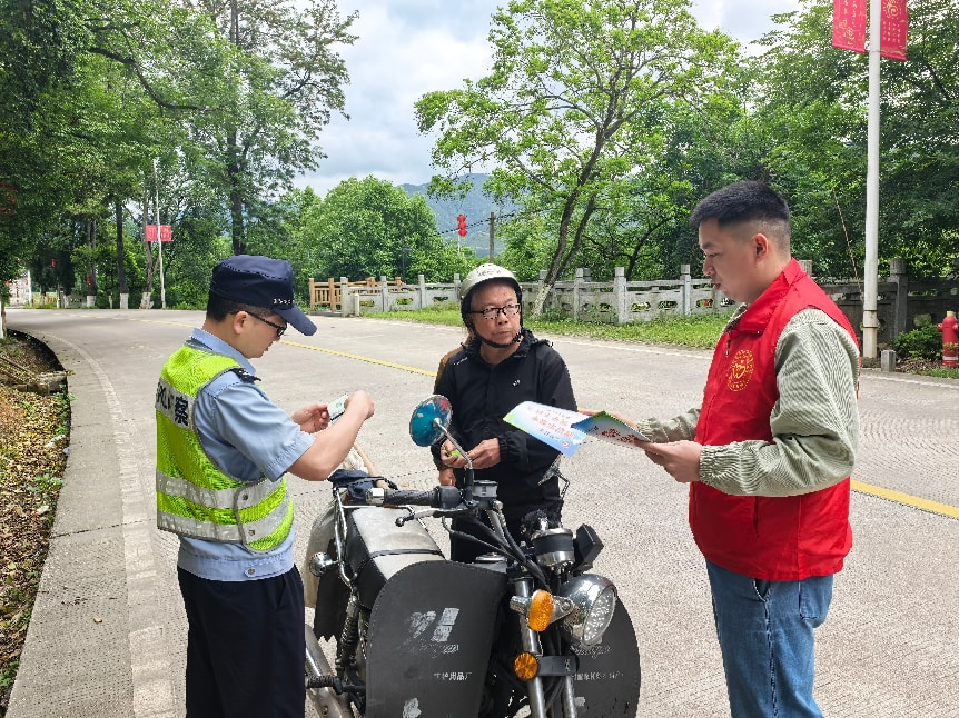 工作人员采取“定点宣传+流动劝导”模式,在辖区主干道、村口路口向过往摩托车、电动车驾驶人发放宣传手册,讲解无证驾驶、酒驾、超速超载、不戴安全头盔等违法行为的危害。民警现场核查驾驶人证件,对轻微违法人员予以口头警告和教育纠正,引导群众自觉遵守交通规则,做到文明出行。