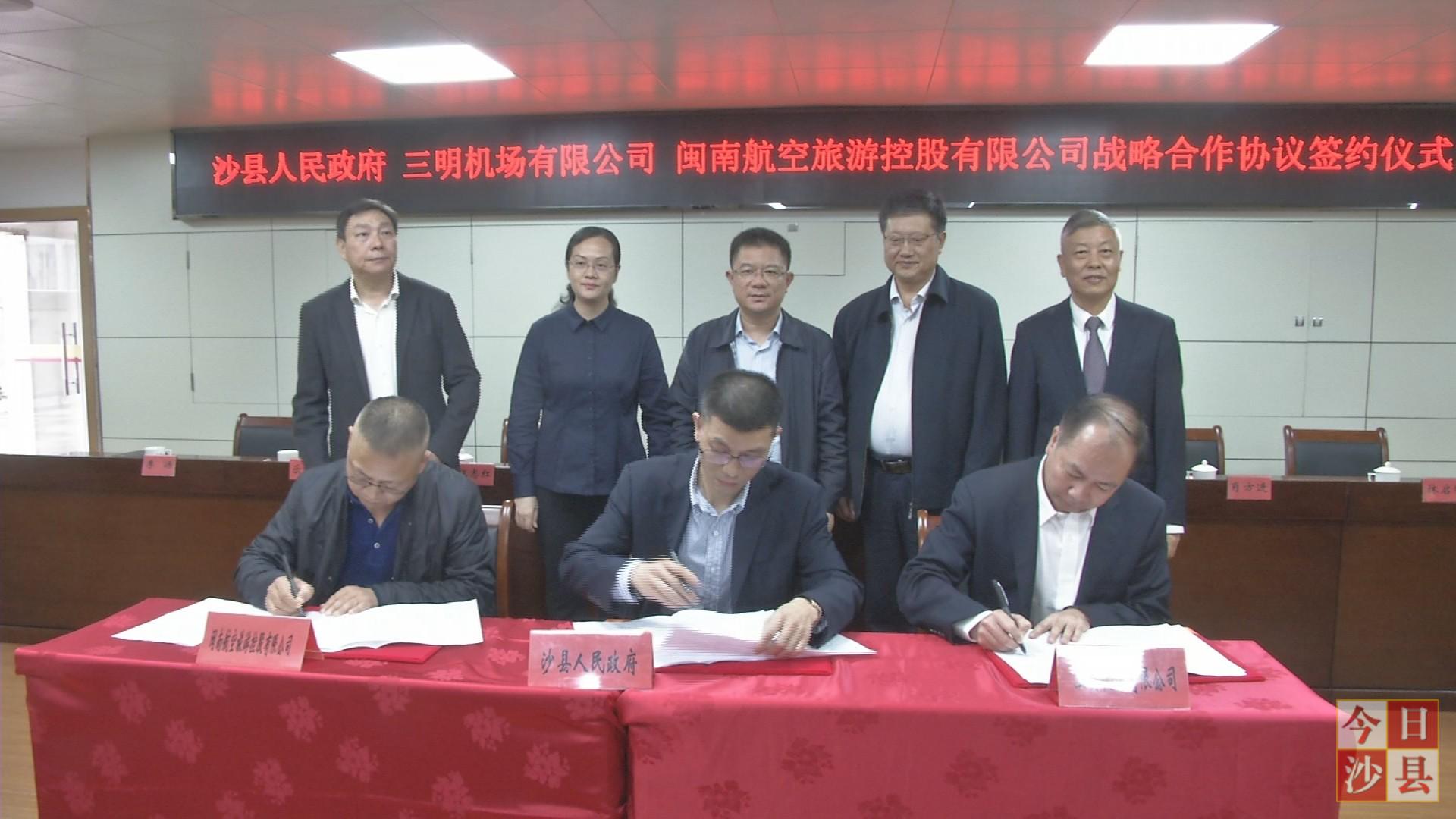 10月16日下午,沙县人民政府、三明机场有限公司与闽南航空旅游控股有限公司举行战略合作协议签约仪式,并就如何加快项目合作进行了洽谈。县委书记杨兴忠、县长汪志红,三明机场有限公司董事长陈小春、闽南航空旅游控股有限公司董事长田斌、县领导肖方进、乐生龙、林启明参加活动。