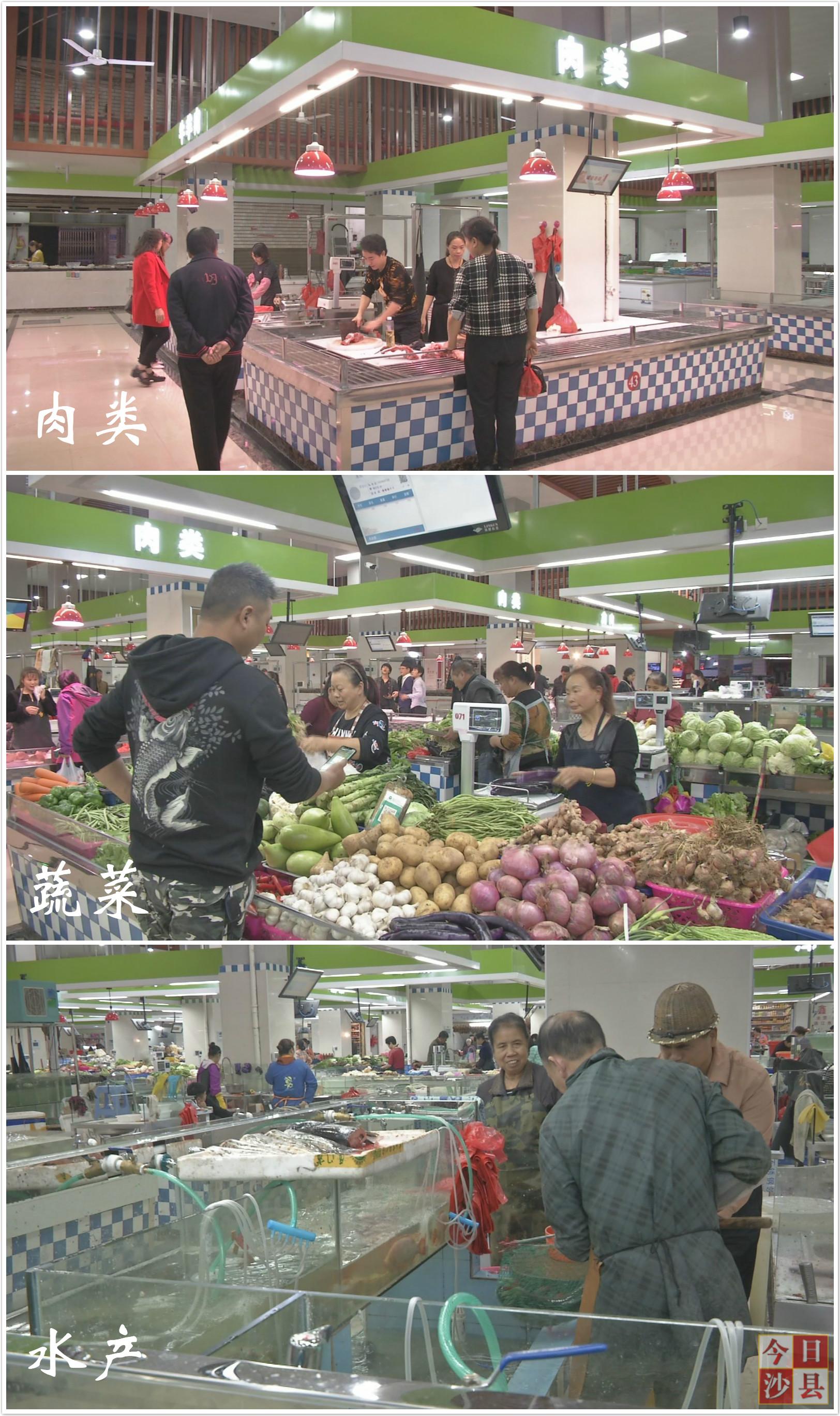 金沙农贸市场经过四个月的升级改造,一扫过去的脏乱差,现在肉类、蔬菜、熟食、面食、海鲜等10多种产品84个摊位摆放整齐,地面干净,无脏水,空气清新,让人舒心极了,仿佛进入超市一样。
