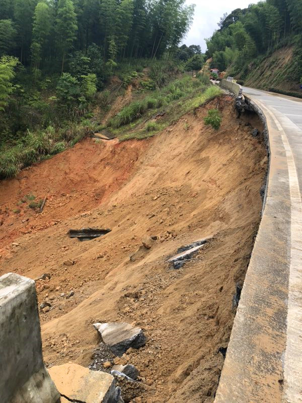 6月13日上午,S308(原304省道)大洛镇境内高坑洋村上庄段路基塌方掏空2处,大洛镇往尤溪县八字桥乡方向省道中断。