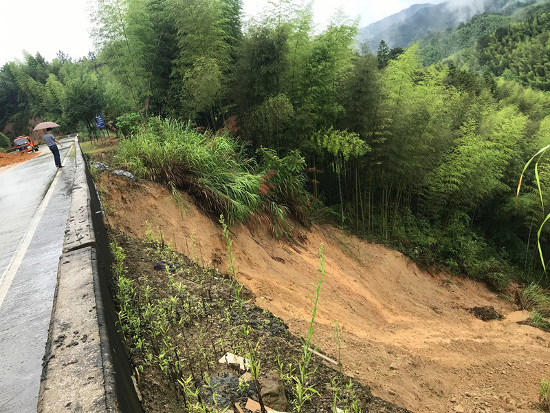经现场勘查,决定在路基塌陷路段附近开通临时便道,需征用附近毛竹山。大洛镇镇、村两级干部立即联系临时便道所经毛竹山的所属村民现场确认征用范围。之后,镇、村干部在高坑洋村部做通相关村民思想工作,村民最终同意在其经营的毛竹山开通临时便道。