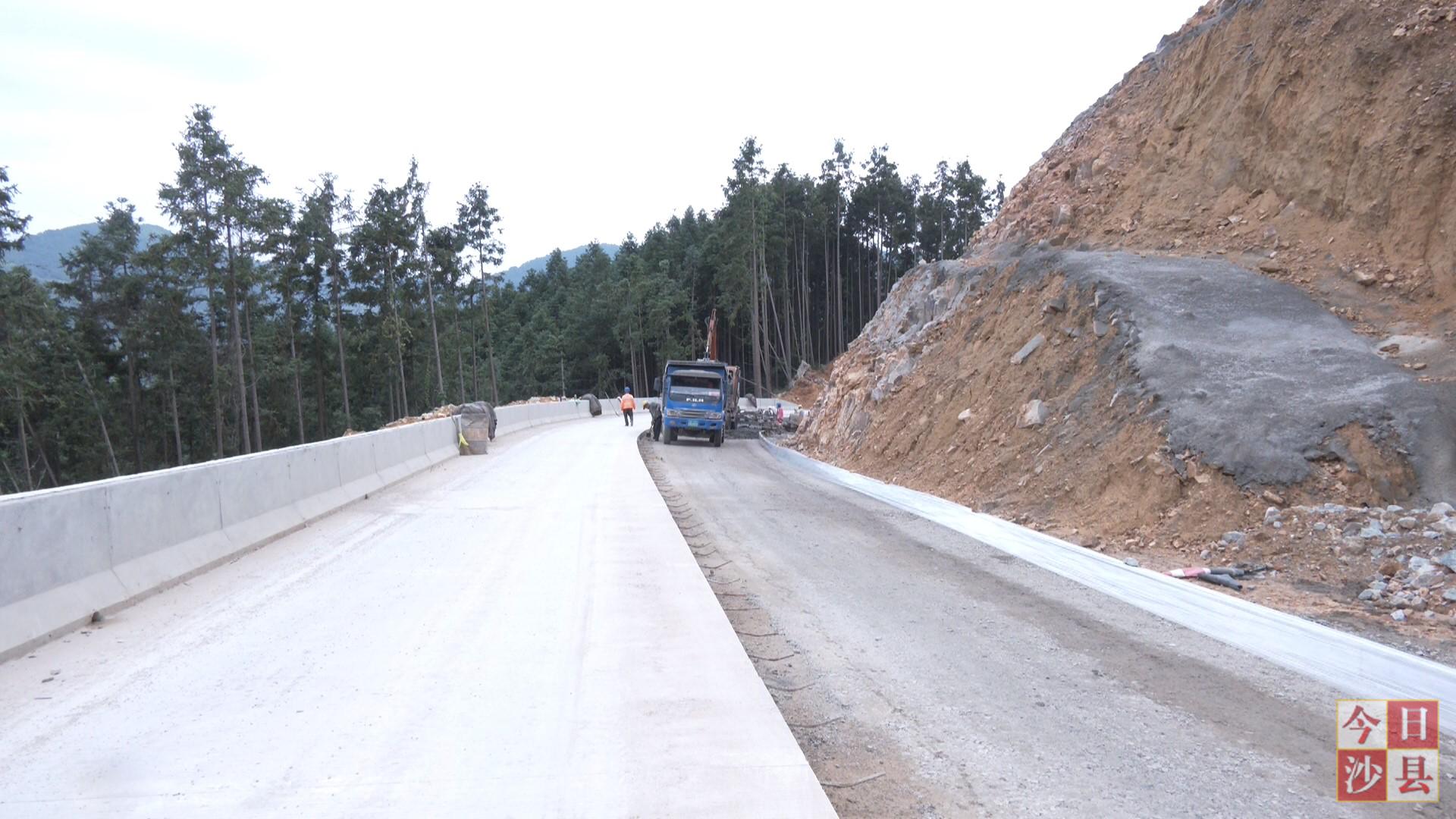 连日来,在沙县南霞经霞村至双溪段公路工程施工现场,工人们正抢抓有利天气进行混凝土路面铺设及防撞挡墙浇筑。目前路面工程施工已接近尾声,近日将完成最后300米的路面混凝土铺设。防撞墙、水沟等附属设施预计将在下个月15日左右完工。