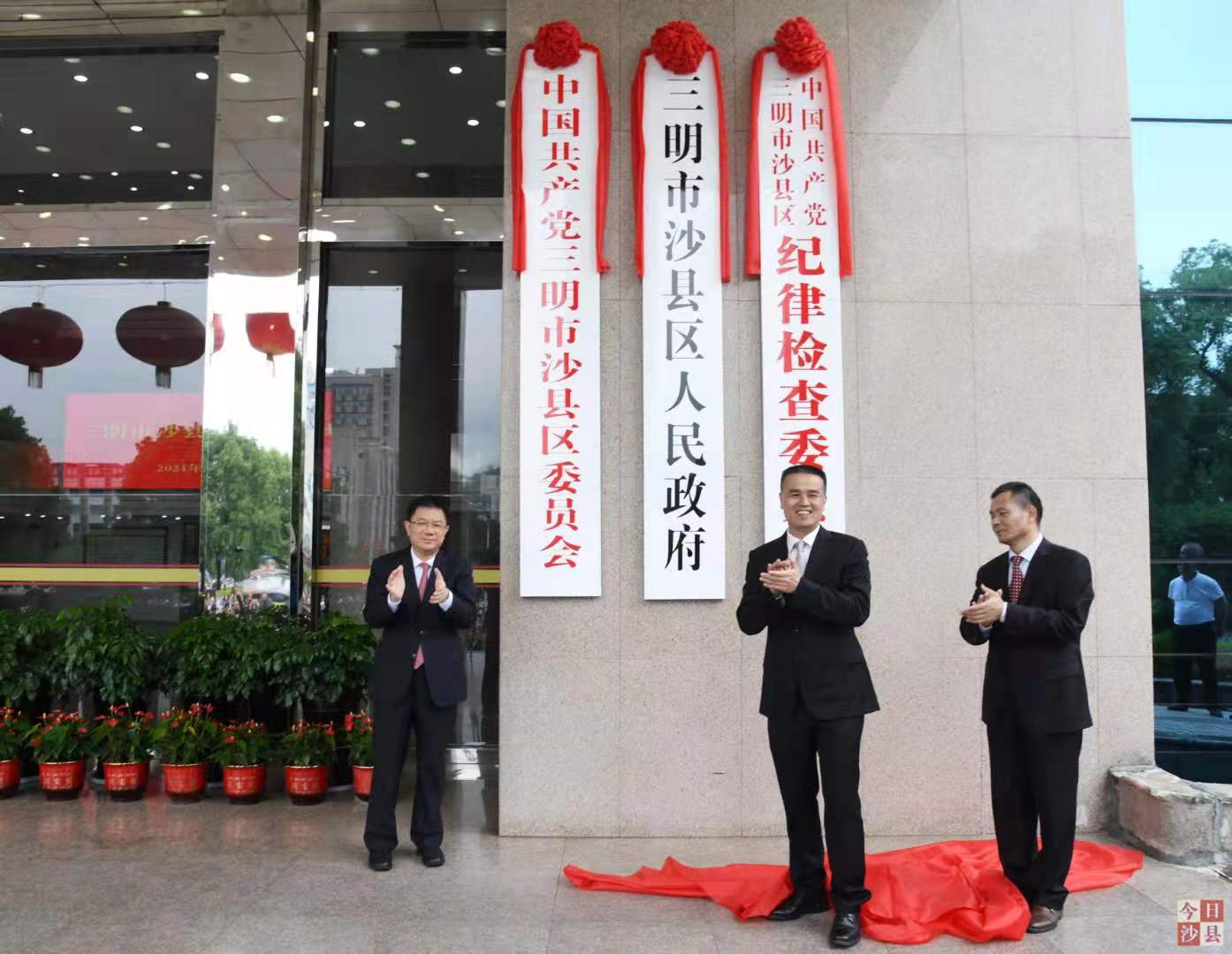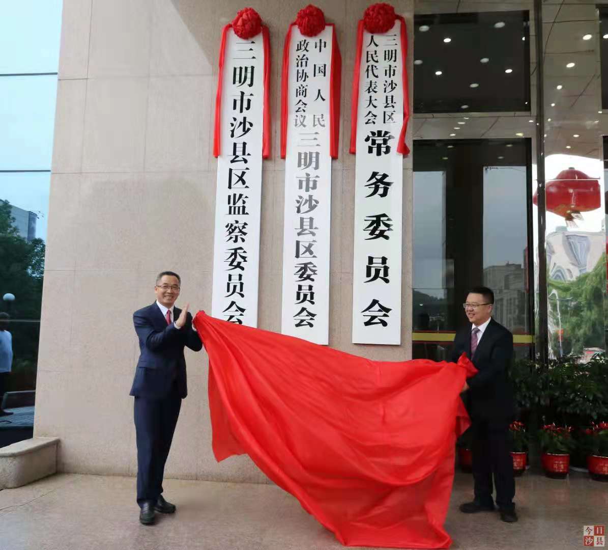 区四套班子领导及纪委监委主要领导为“中国共产党三明市沙县区委员会”“三明市沙县区人民代表大会常务委员会”“三明市沙县区人民政府”“中国人民政治协商会议三明市沙县区委员会”“中国共产党三明市沙县区纪律检查委员会”“三明市沙县区监察委员会”揭牌。