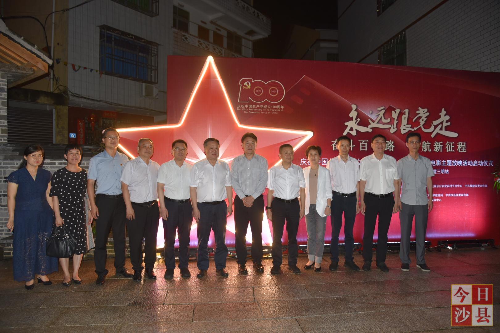 5月20日晚,由中央宣传部电影数字节目管理中心、“学习强国”学习平台、福建省电影局、中央广播电视总台农业农村节目中心等部门主办的“永远跟党走——奋斗百年路 启航新征程”庆祝中国共产党成立100周年全国(福建)公益电影主题放映活动启动仪式在三明市沙县区夏茂镇俞邦村举行。中央宣传部电影数字节目管理中心副主任杨玉飞,省委宣传部常务副部长、省电影局局长许守尧,市委常委、宣传部长宋志强,市人大常委会副主任、区委书记、区人大常委会主任杨兴忠,区委常委、宣传部长乐生龙参加活动。