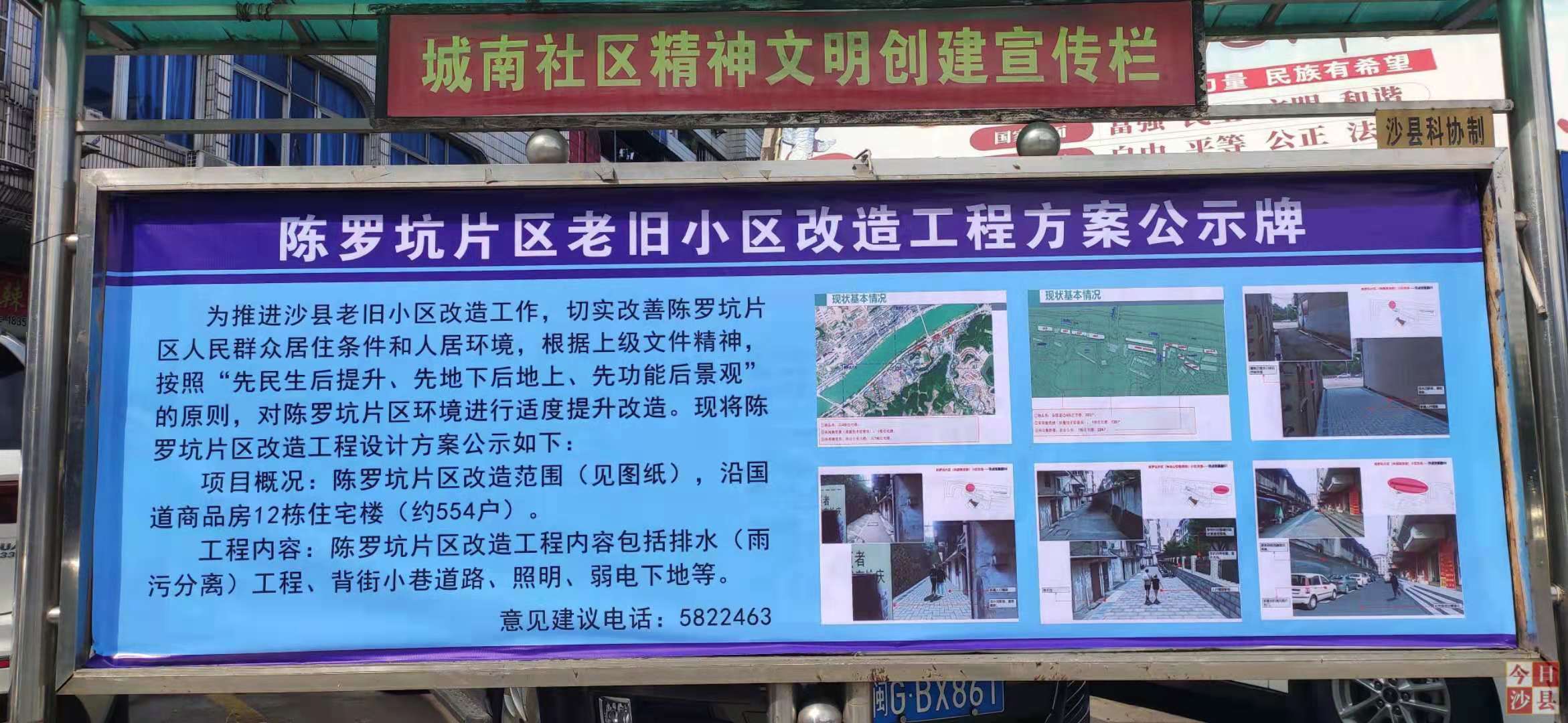 陈罗坑片区老旧小区改造项目陈罗坑片区老旧小区基础设施老化,排水管道不畅,道路破损、电线杂乱,是困扰居民的老大难问题。为切实改善陈罗坑片区群众居住条件和人居环境,虬江街道启动老旧小区改造。项目计划投资439万元,改造内容包括排水(雨污分离)工程、背街小巷道路、照明、弱电下地、停车规划等,计划年底完工投入使用。