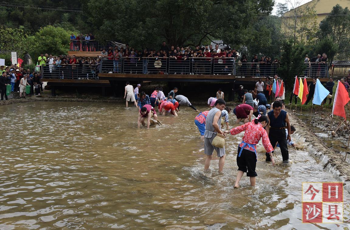 在最具人气的摸鱼环节,运动员们施展浑身解数,眼疾手快地徒手抓鱼,围观的群众中不时爆发出欢呼声和喝彩声,将比赛气氛推向高潮。