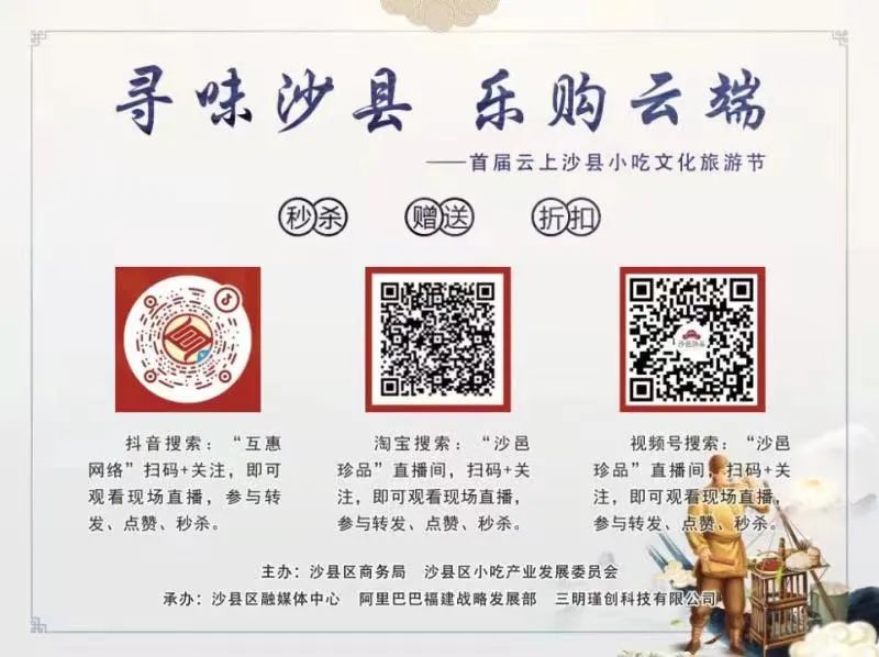 为顺应数字化时代的浪潮,积极响应疫情防控要求,今年的沙县小吃旅游文化节活动首次发展到了线上。12月8日上午,沙县区在小吃城三期广场正式启动“寻味沙县,乐购云端”——首届云上沙县小吃旅游文化节活动。