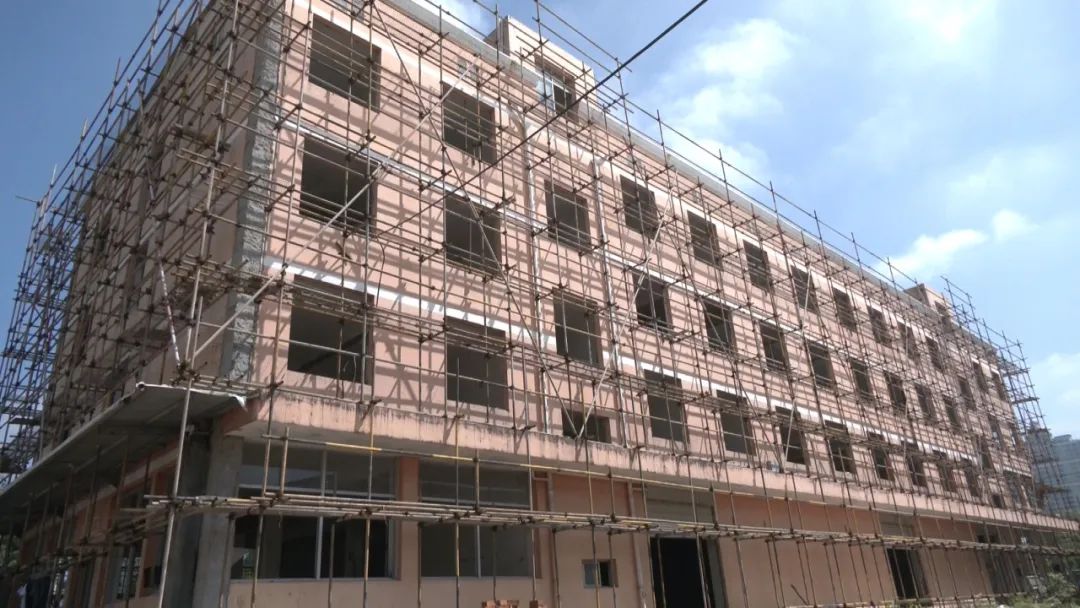 连日来,工人们正抢抓晴好天气,对主体建筑进行室内外装修,现场一派热火朝天的施工景象。目前,项目主体建筑已封顶,多个单体建筑“真容”渐露、雏形显现。