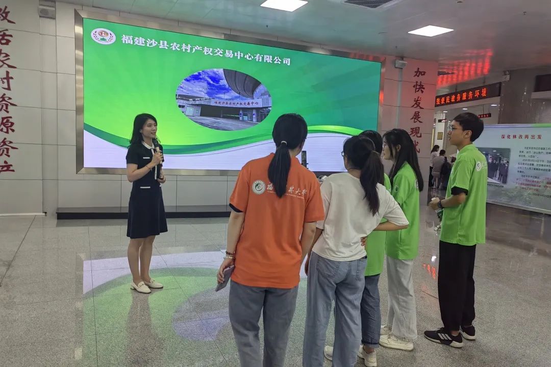在沙县区农村产权交易中心,实践队深入了解当地深化林权制度改革情况。工作人员为实践队介绍了习近平总书记到产权交易中心调研时的相关内容以及林权制度改革的具体情况,特别讲解了三明市围绕“钱从哪里来”,探索破解林农贷款难贷款贵、“树要怎么砍”,探索破解生态效益和经济效益如何相统一、“单家独户怎么办”,探索破解林业生产管理碎片化等问题,持续深化集体林权制度改革,取得积极成果,发挥探路子、出经验、做示范的作用。