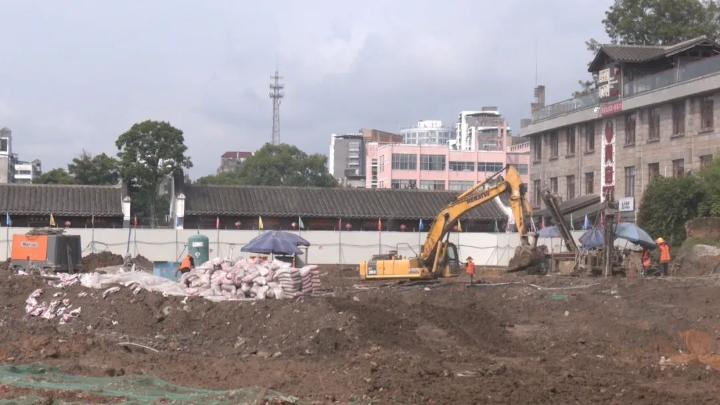 8月10日上午,在位于文昌街旁的项目一期A标建设现场,工人们抢抓晴好天气,正在进行基坑支护工作。