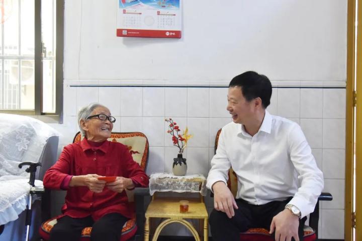 吴健成一行先后来到离休干部曹振健、百岁老人魏赛月和王位悟家中,每到一处,吴健成都关切询问老人的身体状况及日常生活情况,祝愿老人保重身体、健康长寿。