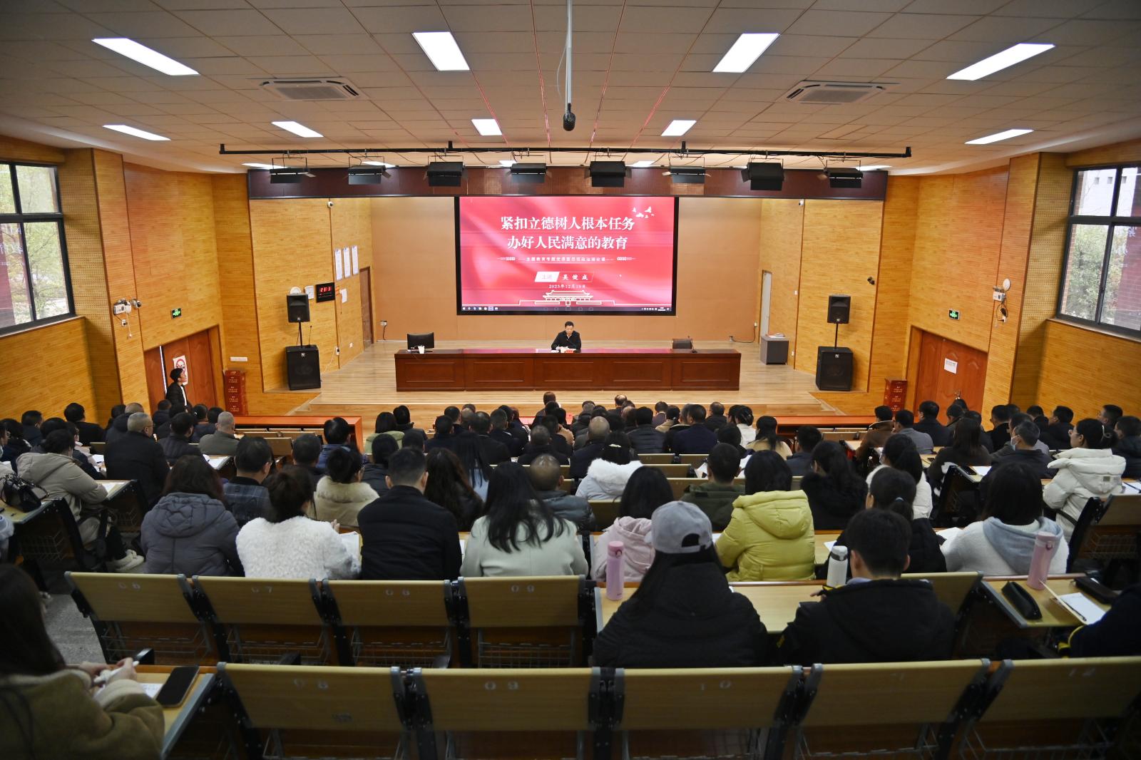 吴健成以《紧扣立德树人根本任务 办好人民满意的教育》为题,从胸怀大局,充分认识办好教育的重大意义;坚守初心,努力锻造新时代高素质教师队伍;正视不足,凝聚形成办好教育的强大合力等三个方面进行授课。