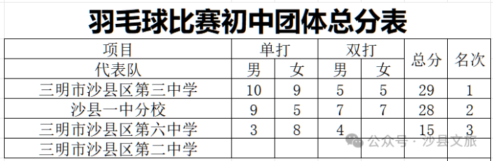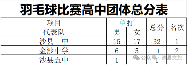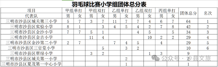 本次比赛由沙县区文体和旅游局、沙县区教育局联合主办,吸引了来自全区各中小学17支代表队215名运动员参赛。比赛设小学甲、乙、丙组,男、女单、双打;初中男、女单、双打;高中男、女单、双打等20个小项,分为分组循环赛和决赛两个阶段进行。(编辑:鲍林玲)