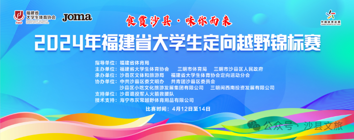 2024年福建省大学生定向越野锦标赛将于4月12日至14日在沙县区举办。
